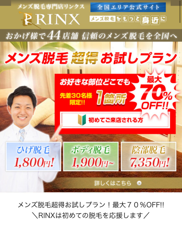 男性の胸毛やヒゲ、全身の体毛の脱毛におすすめなのは、男性専用の脱毛サロン「RINX(リンクス)」です。