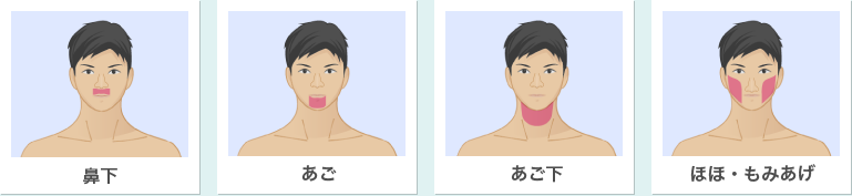 ヒゲ脱毛は全部位「鼻下」「あご」「あご下」「ほほ・もみあげ」
